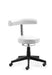 Sitz: und Rücken gepolstert, Rücken-Rasterhöhenverstellung, stufenlose Höhenverstellung durch Gasfeder, Ringauslösung, Kunststoff-Fußkreuz , inkl. Rollen für Hartböden, Sitzhöhe 44 - 56 cm.