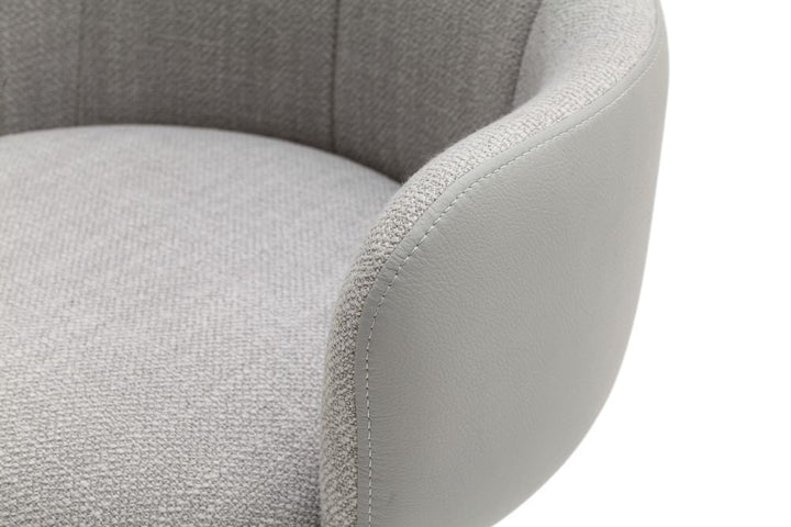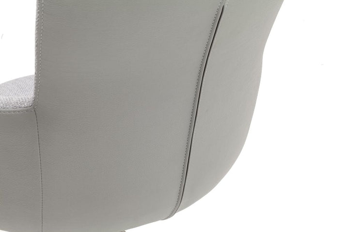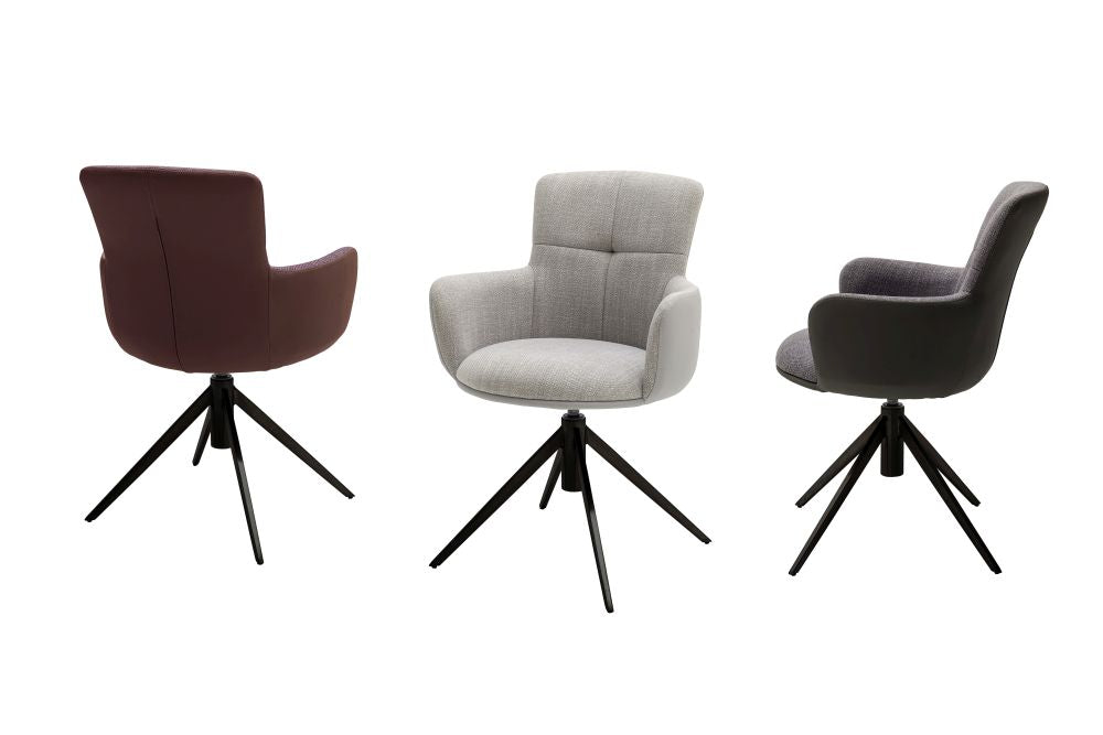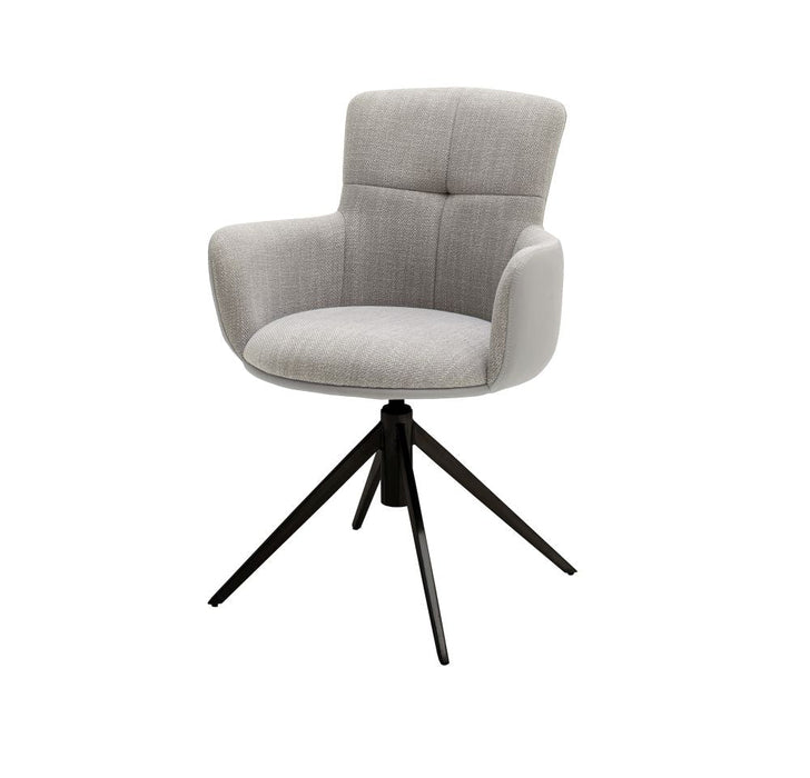 Esszimmerstühle 2er-Set im Materialmix innen mit Stoffbezug in Chenille Optik und außen und Keder in Kunstleder. Mit Steppung in der Rückenlehne. Gestell Metall Kantrohr in schwarz matt lackiert . Stuhl 360°drehbar mit Nivellierung. Diese sorgt dafür, das sich der Stuhl automatisch wieder in seine ursprüngliche Position dreht. Stuhl belastbar bis 120 kg. Nettogewicht ca. 9 kg. Sitzmaß BxHxT 41x49x43 cm, Stellmaß BxHxT 60x87x64 cm. Die Lieferung erfolgt zerlegt inkl. Aufbauanleitung.