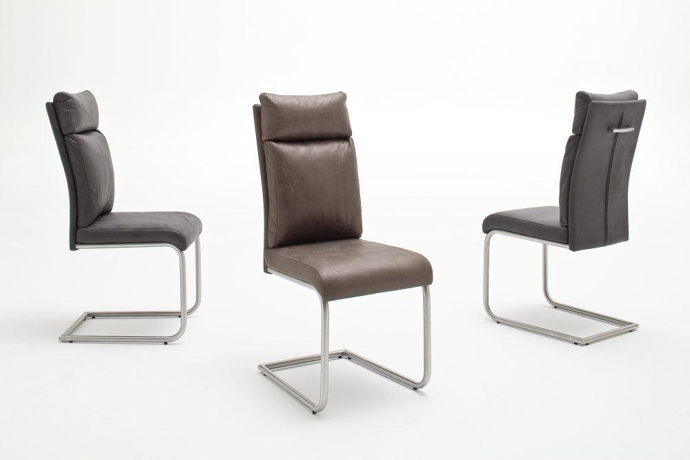 Esszimmerstühle 2er-Set mit Stoffbezug in Antiklook mit Griff. Stuhl mit aufgesetzter Kissenoptik. Mit rückseitigen Griff für einfaches Handling. Gestell Rundrohr in Edelstahl gebürstet mit 25mm durchmesser, Stuhl Nettogewicht ca. 6,8 kg. Stuhl belastbar bis maximal 120 kg. Sitzmaß BxHxT 46x49x42 cm, Stellmaß BxHxT 45x106x62 cm. Die Lieferung erfolgt zerlegt ink. Aufbauanleitung