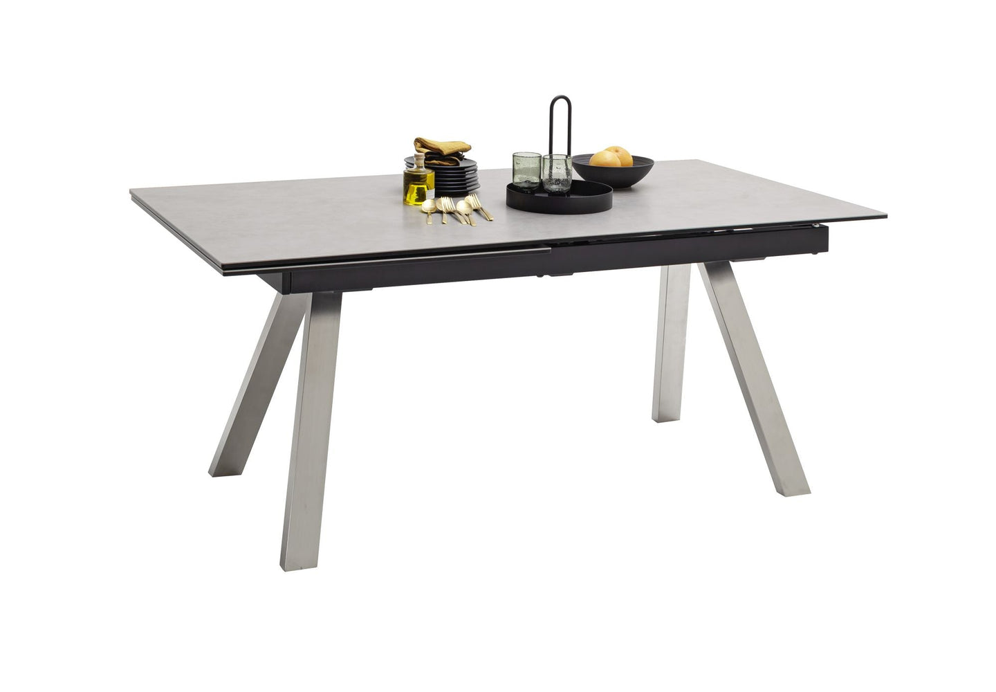 MCA | TOBAGO 4F.TISCH180-260 HG | 10MM GLAS + 3MM KERAMIK | HELLGRAU,FUß EDELST.GEBÜR