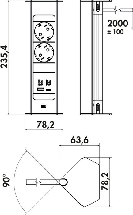 - 1 x USB Charger Typ A, 5 VDC, IA/I out: 1100 mA