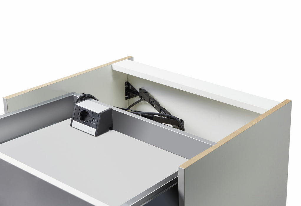 - Passend für Schubkästen ab 400 mm Breite und bis zu einer Auszugslänge von 590 mm.