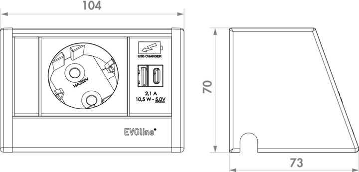 - USB Charger Typ A+C, 5 V, 2100 mA