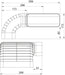 Das Rohrset erlaubt eine platzsparende Anordnung der Abluftrohre bei Dunstabzugshauben mit Downdraft- bzw. Muldenlüftung.