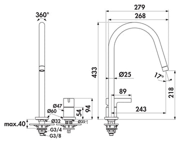 Naber | Gusto L2 | Einhebelmischer | brushed gold | Hochdruck