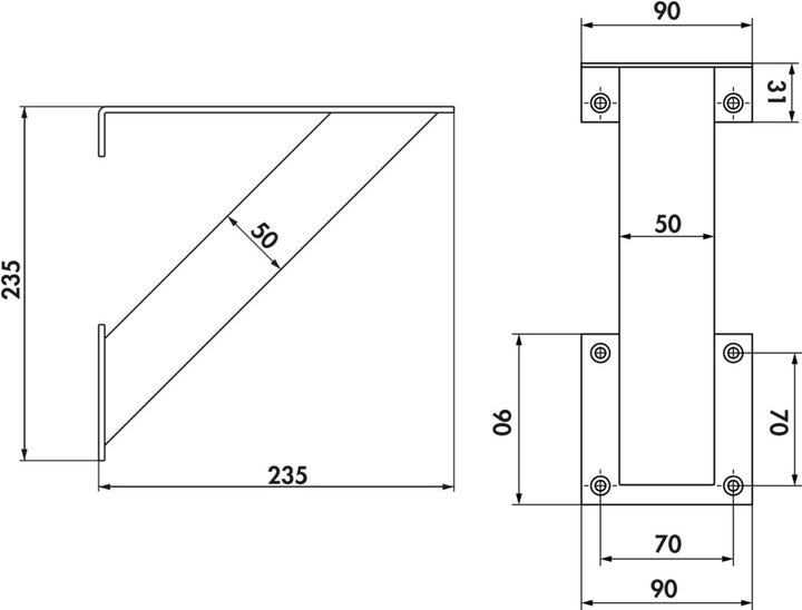 • max. Tragkraft pro Paar von ca. 60 kg bei gleichmäßig verteilter Last, bei einem max. Abstand der Konsolen von 900 mm und einem max. Überstand der Platten von 250 mm