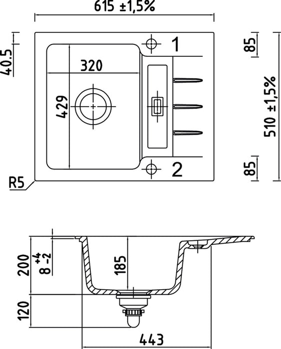 - Ausschnittmaß ca. 585 x 480 mm, R 5 mm5 Jahre Herstellergarantie (außer auf Verschleißteile)Design by Hans Winkler Design, Grafenau.
