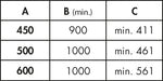 - für 900 mm Schrankbreite und 450 mm Türbreite