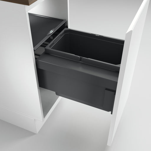 Mit herausziehbarem Gesamtdeckel. Führungsschienentiefe 470 mm Abfallvolumen 20 (2 x 10) Liter Technik: Vollauszug Montage: Schrankwand und Frontbl...