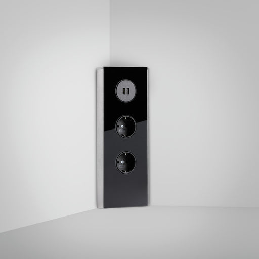 Vollständige Details anzeigenEck-Steckdosenelement, 2-fach und Doppel USB Charger (Ladestation). Frontseite in bedrucktem und kratzfestem Glas, für 90° Ecke. Edelstahlgehäuse 2...