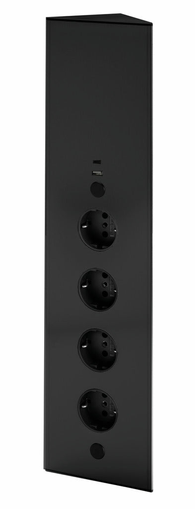 Vollständige Details anzeigenEck-Steckdosenelement. 3-fach. Mit teleskopierbarem Ausgleichsstück ohne Endkappen, mit Schalter schwarz für externe Beleuchtung. 240 V/16 A 460–58...