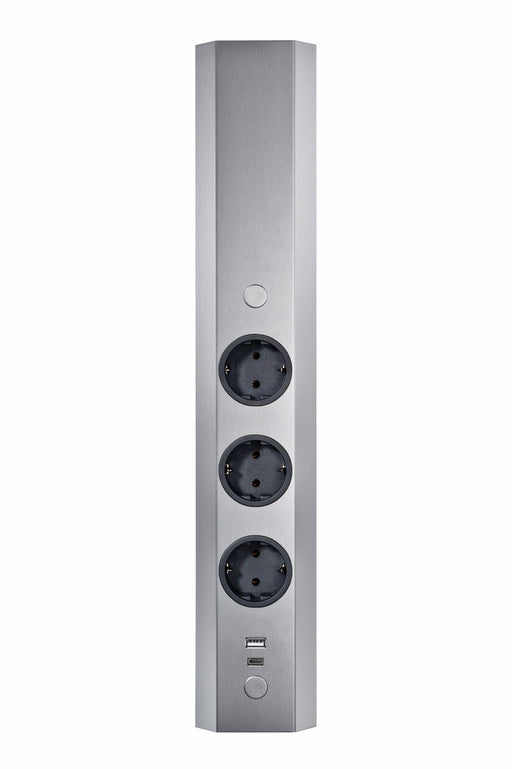 Vollständige Details anzeigenSteckdosenelement. 3-fach. Edelstahlgehäuse in kompakter Bauform mit teleskopierbarem Ausgleichsstück 240 V/16 A 1 x USB Charger Typ A, 5 VDC, IA/...