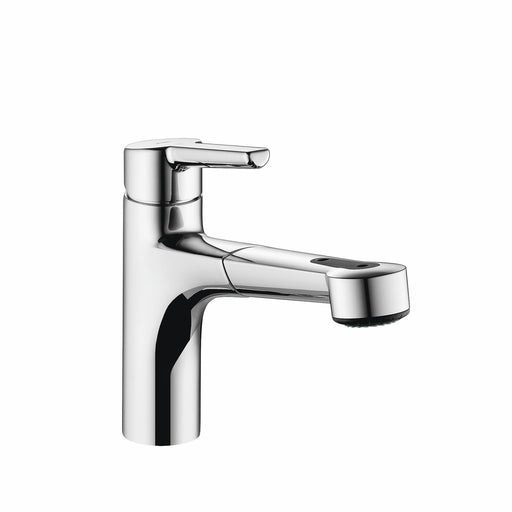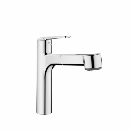 Einhebelmischer. Mit schwenk-/herausziehbarer Schlauchbrause (Strahl/Brause umstellbar), seitlichem Hebel und Keramikkartusche. Schwenkbereich 360°...