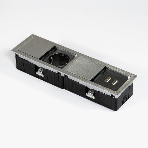Vollständige Details anzeigenSteckdosenelement. Versenkbar. Mit 2 Steckdosen und USB A/C Charger für Hängeschränke oder Arbeitsplatten. 3400 Watt/16 A, 220–250 VAC, IP54 Doppel...