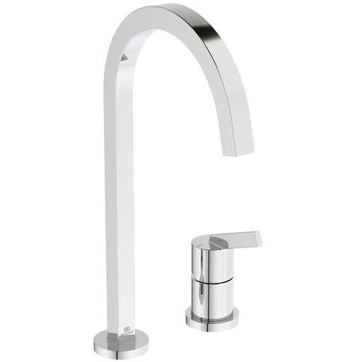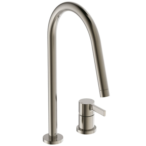 Mit schwenkbarem Auslauf, separat zu positionierendem Metallhebel und Keramikkartusche, Schwenkbereich 360°, Bohr-Ø 35 mm