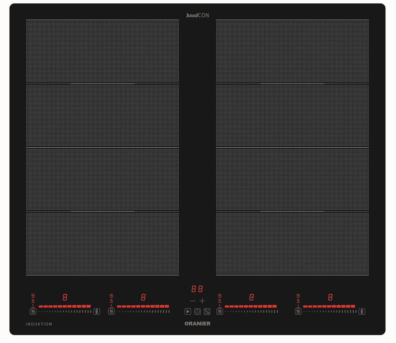 Vollständige Details anzeigenKochfeldabzug mit FlexX-Induktion und Slider, 4 Kochzonen, 4-fach Booster, 4-fach Timer, 3 Warmhaltestufen (Schmelzen, Warmhalten, Fortkochen), Brü...