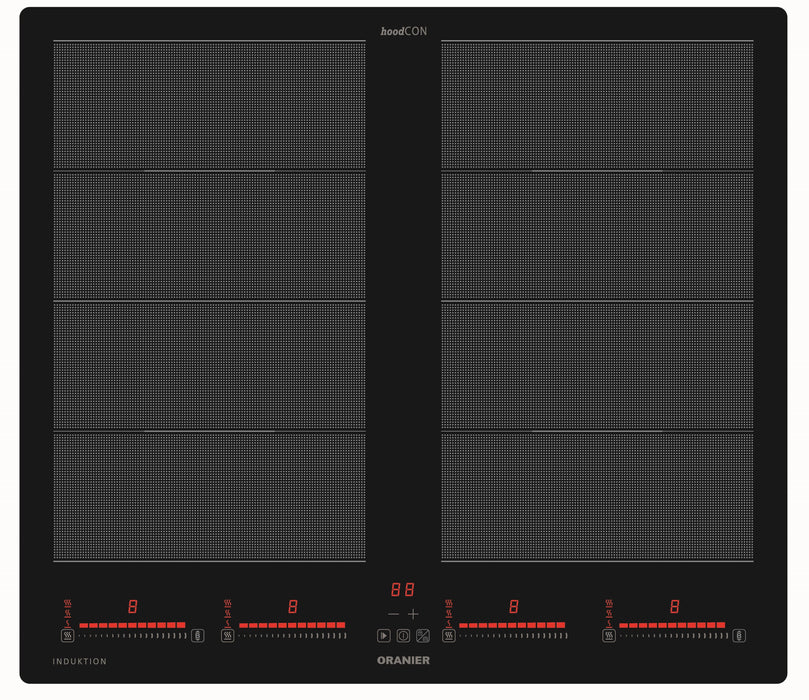 Kochfeldabzug mit Flächeninduktion und Multi-Slider, 4 Kochzonen, 4-fach Booster, 4-fach Timer, Brückenfunktion, Grillfunktion, Warmhalte- / Sous-V...