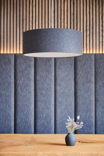 Pendelleuchte mit Lampenschirm aus gewalktem Loden- ein Verbund aus reiner Merinowolle - natürlich aus nachhaltigem Anbau. Ein edler Werkstoff für Kunden mit hohen Ansprüchen. Erhält in 4 verschiedenen Farben - und auf Wunsch in sämtlichen anderen.