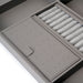 Dank seines modularen Designs ist dieser Organizer mit den Quarz-Auszugsregalen kompatibel und ermöglicht es Ihnen, den Raum Ihren Bedürfnissen entsprechend zu gestalten. Erhältlich in Größen für Module 600, 700, 800 und 900 mm, passt er sich leicht an verschiedene Schrankkonfigurationen an. Die Installation ist sehr einfach, da die Schublade nur auf das Regal gesetzt werden muss und mit den mitgelieferten Kunststoffwinkeln einen festen Sitz hat.