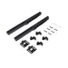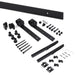 Das System besteht aus einer 2-Meter-Oberschiene, zwei Wagen für eine Tür, Entgleisungszubehör sowie Installations- und Befestigungsschrauben. Die Brettern sind nicht enthalten.