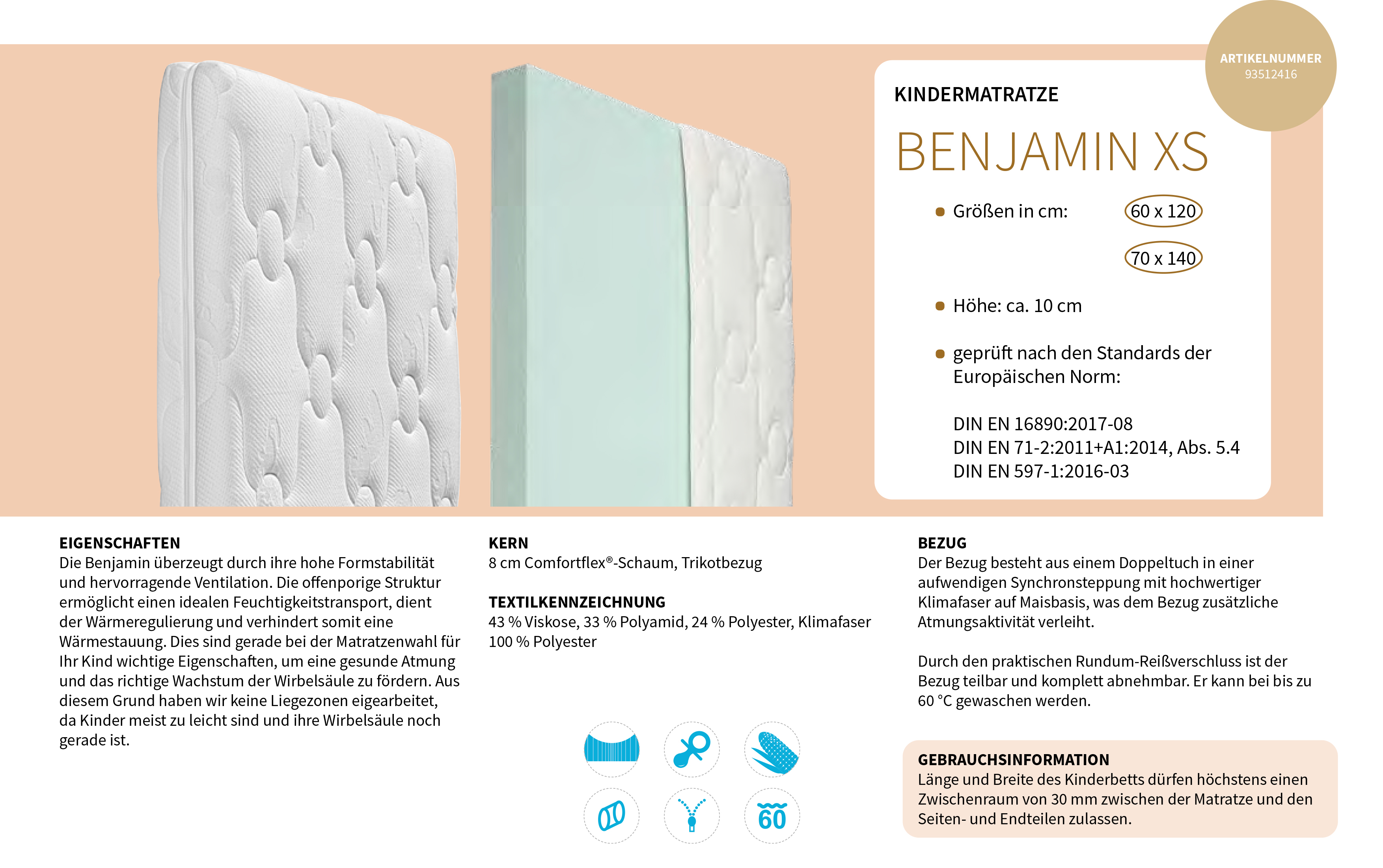 MALIE | Matratze | BENJAMIN Kinder | Comfortflex Schaum