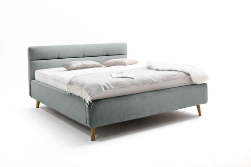 Polsterbett mit hochwertigem Stoffbezug, Kopfteil gesteppt, Holzfüße eichefarbig, Bett Belastbar bis 120 Kg, Einlegetiefe: ca. 14 cm, Oberkante Bet...