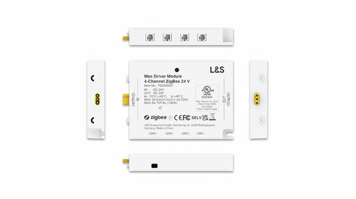 weiß 4-Kanäle mit je einem LED Ausgang max. 3 A pro Ausgang, max. 5 A gesamt Steuerung per Fernbedienung oder Smart Home ZigBee Mesh auch ohne Bri...