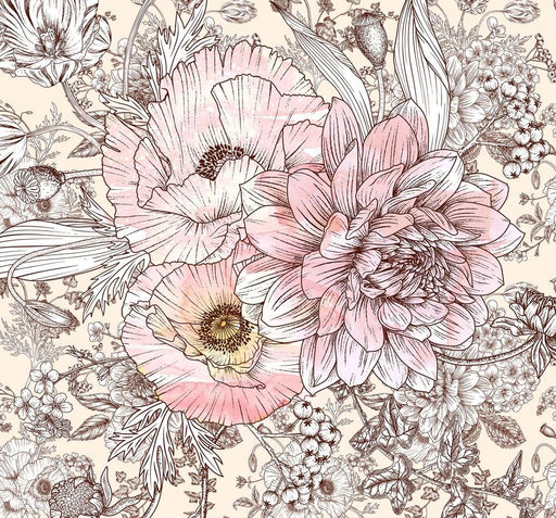 Florale Elemente zeichnen sich auf der vergilbten Betonoptik in pastelligen Farbtönen ab.Deutsches Qualitätsvlies (155 g/m²) mit samtiger Textilopt...