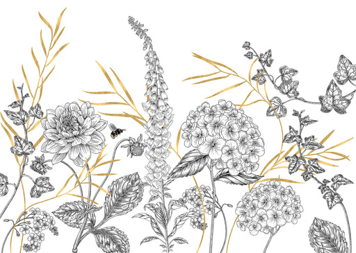 Eine künstlerische Fototapete, die filigrane Blumen in den Mittelpunkt stellt und sanft in zarte Schattierungen übergeht. Die blauen Blüten auf ein...