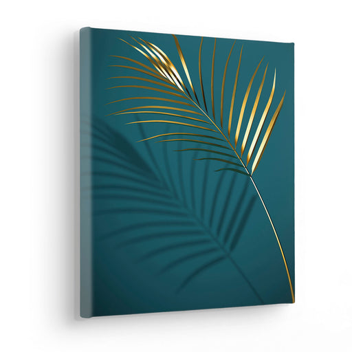 Dieses Palmenblatt wurde in Gold getaucht und wirkt auf dem Hintergrund in Petrol glamourös und wertvoll. Der Schatten verleiht dem Bild Tiefe. Wer...
