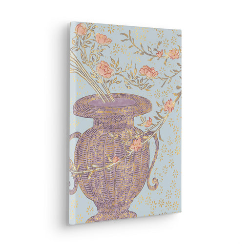Die wunderschöne Vase wird von hübschen Blümchen umrankt. Goldschimmernde Akzente werten das Wandbild zusätzlich auf und schenken ihm einen glamour...