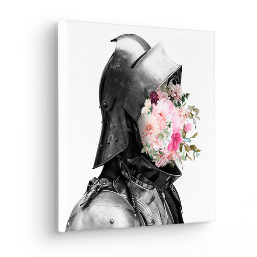 Wenn aus Krieg Frieden wird. Diese Illustration lebt von ihrer Gegensätzlichkeit. Die schwere Rüstung, die kampfbereit für sich spricht und die her...