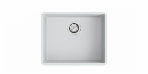 Unterbauspüle. Composite, Einzelbecken. 3½" Siebkorbventil mit Druckknopfexzentergarnitur, Edelstahl. geeignet für Arbeitsplattenstärken von 25 mm ...