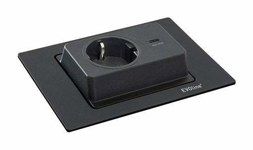 Steckdosenelement. 1-fach mit USB C Charger (Ladestation). Durch manuelles Drehen des Elements werden die Steckdosen freigelegt. Einbautiefe 49 mm,...