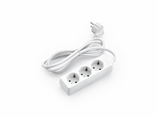 Steckdosen schräg angeordnet 45°, weiß, mit Schutzkontakt-Winkelstecker. Leitung H05VV-F3 x G 1,5 mm² belastbar max. 3500 Watt