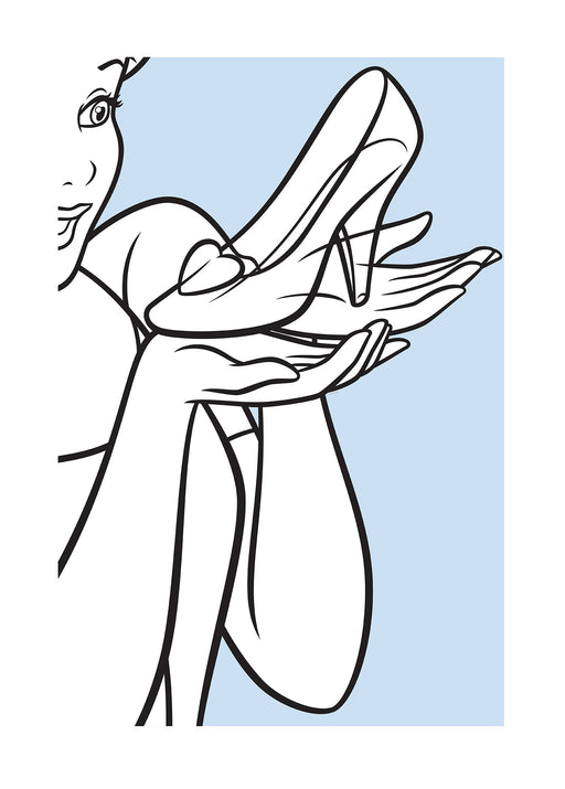 Entzückt betrachtet Cinderella ihren wunderschönen gläsernen Schuh, der nur an ihren eigenen Fuß perfekt passt. Produkt Typ: Wandbild Farbe: Blau...