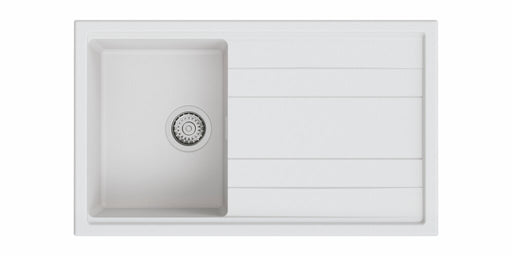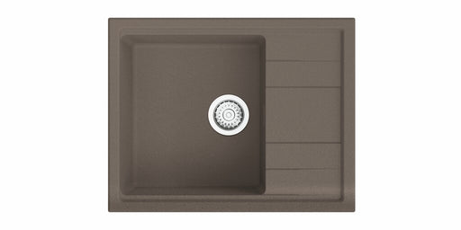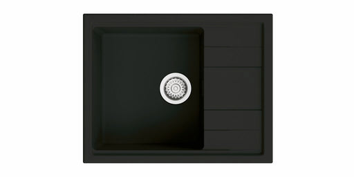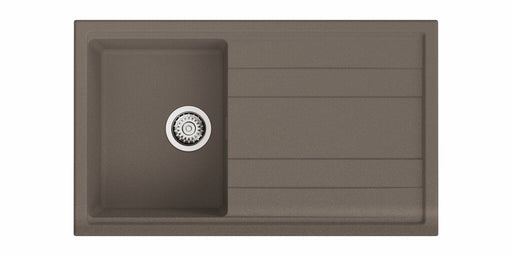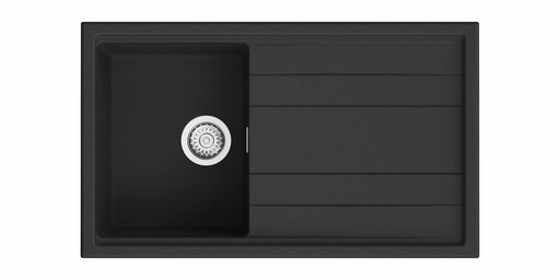 Einbauspüle. Composite, mit Abtropffläche, reversibel. 3½" Siebkorbventil mit Druckknopfexzentergarnitur, Edelstahl. beidseitig durchgebohrt geeign...