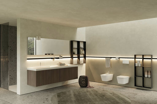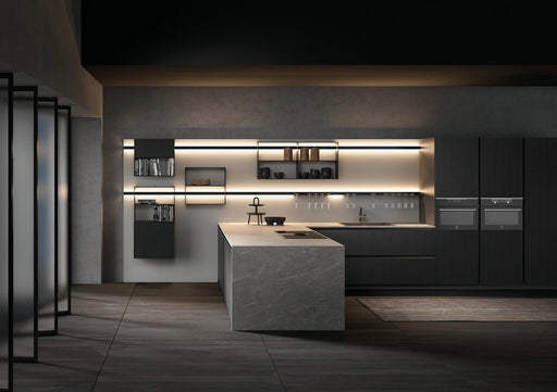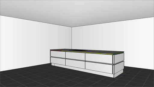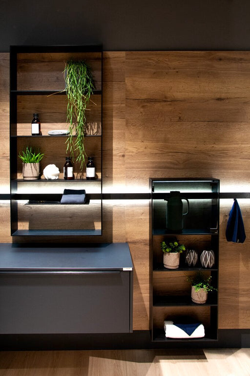Universell einsetzbares Profilsystem aus schwarz eloxiertem Aluminium für Wohnraum, Küche oder Bad. Profil mit LED Beleuchtung und Lichtblende stuf...