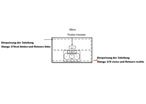 Für Aufhängeschienen. Zur Umgehung von Leitungen: Bohrungen werden außerhalb der Leitungen platziert, die Aufhängeschiene wird dann durch beide Pro...