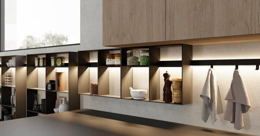 Hochwertige Regale für das Lucento Profilsystem, schwarz. Flexibel einsetzbar, als Einzelregal oder in Kombination mit Küchenmöbeln.Verwendbar mit ...