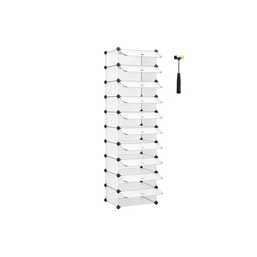 SONGMICS Schuhregal, DIY, Schuhschrank mit Tür, 10 Ebenen, aus PP-Kunststoff, Schuhablagen, mit Gummihammer und Umkippschutz, halbtransparent weiß ...
