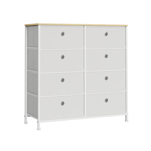 SONGMICS Kommode, Aufbewahrungsschrank, 8 Stoffschubladen, mit Metallgestell, Tischplatte, für Kleiderschrank, WohnzimmerFarbe: Cremeweiß-Eichenfar...