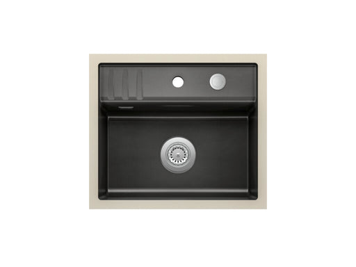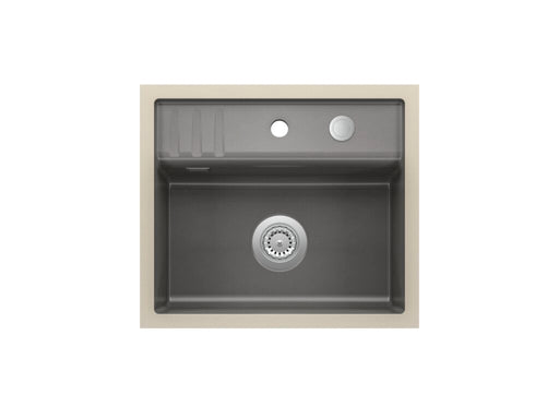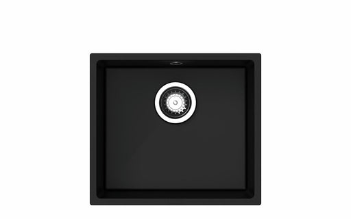 Unterbauspüle. Composite, Einzelbecken. 3½" Siebkorbventil mit Drehexzentergarnitur, verchromt. geeignet für Arbeitsplattenstärken ab mind. 15 mm E...