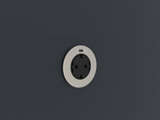 Steckdosenelement, 1 fach mit USB C Charger (Ladestation). Zum Einbau in Arbeitsplatte, Frontblende oder Seitenwand. Bohr Ø 56 mm Einbautiefe ca. 4...
