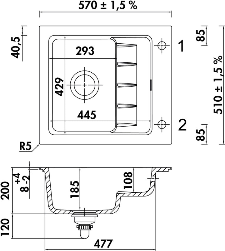 - Ausschnittmaß ca. 540 x 480 mm, R 5 mm5 Jahre Garantie auf HerstellungsfehlerDesign by Hans Winkler Design, Grafenau.