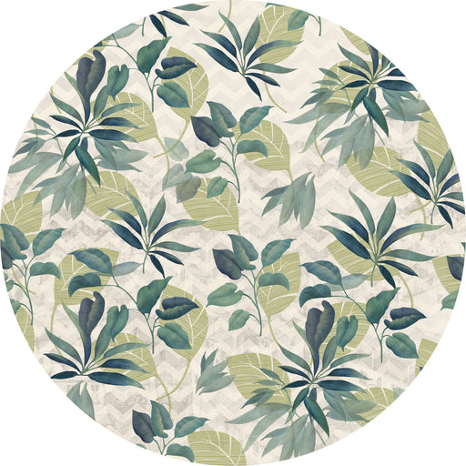 Blühendes Blattwerk - vor grafischen Mustern erstahlen verschieden Grüne Blätter, unterschiedlichster Bäume. Selbstklebende und runde Vliestapete (...