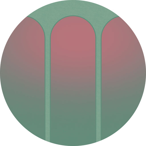 Wie ein Blick durch ein hochherrschaftliches Palastfenster hinaus in einen rosafarbenen Sonnenuntergang wirken die drei geschwungenen Torbögen in z...
