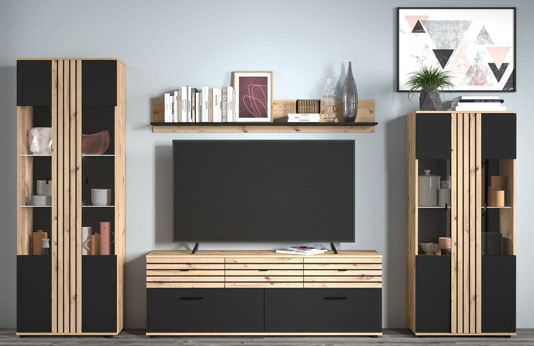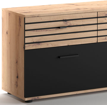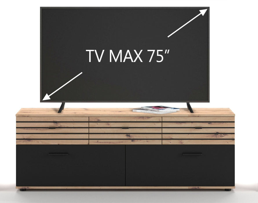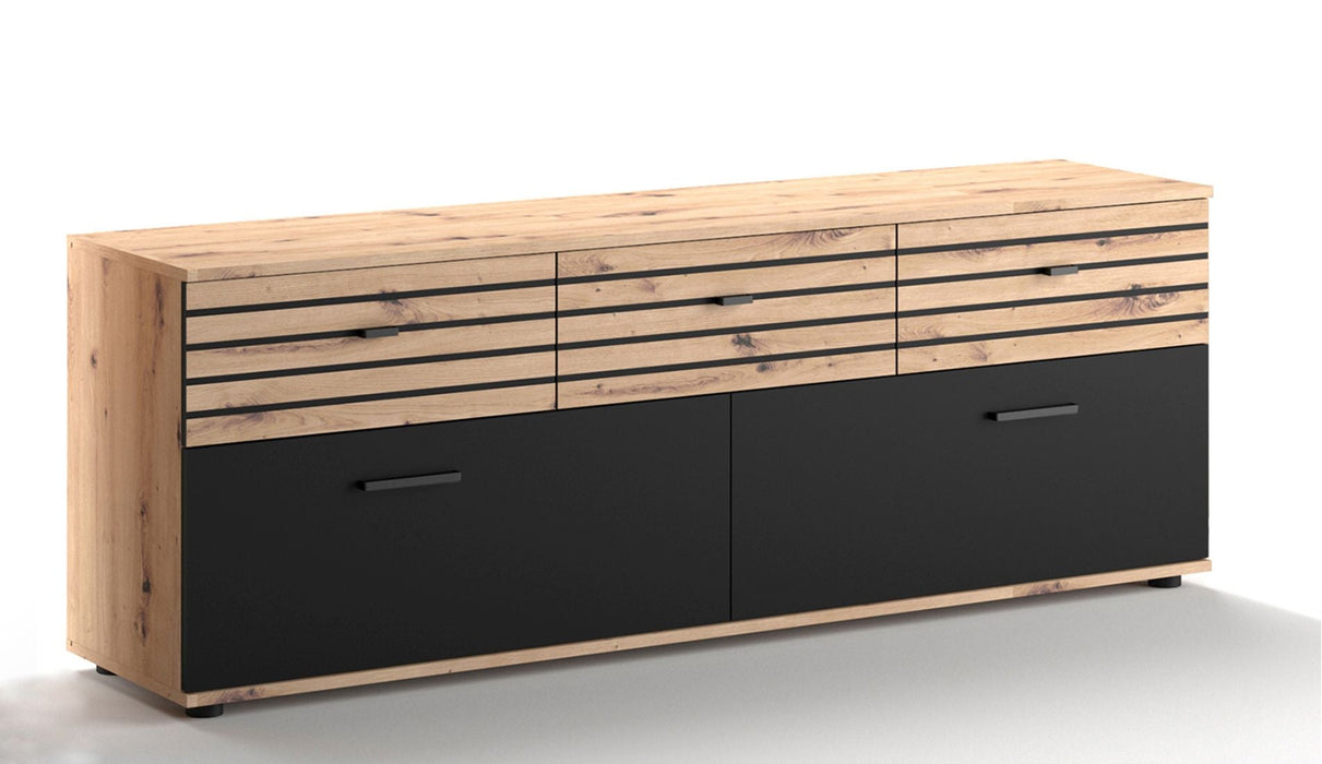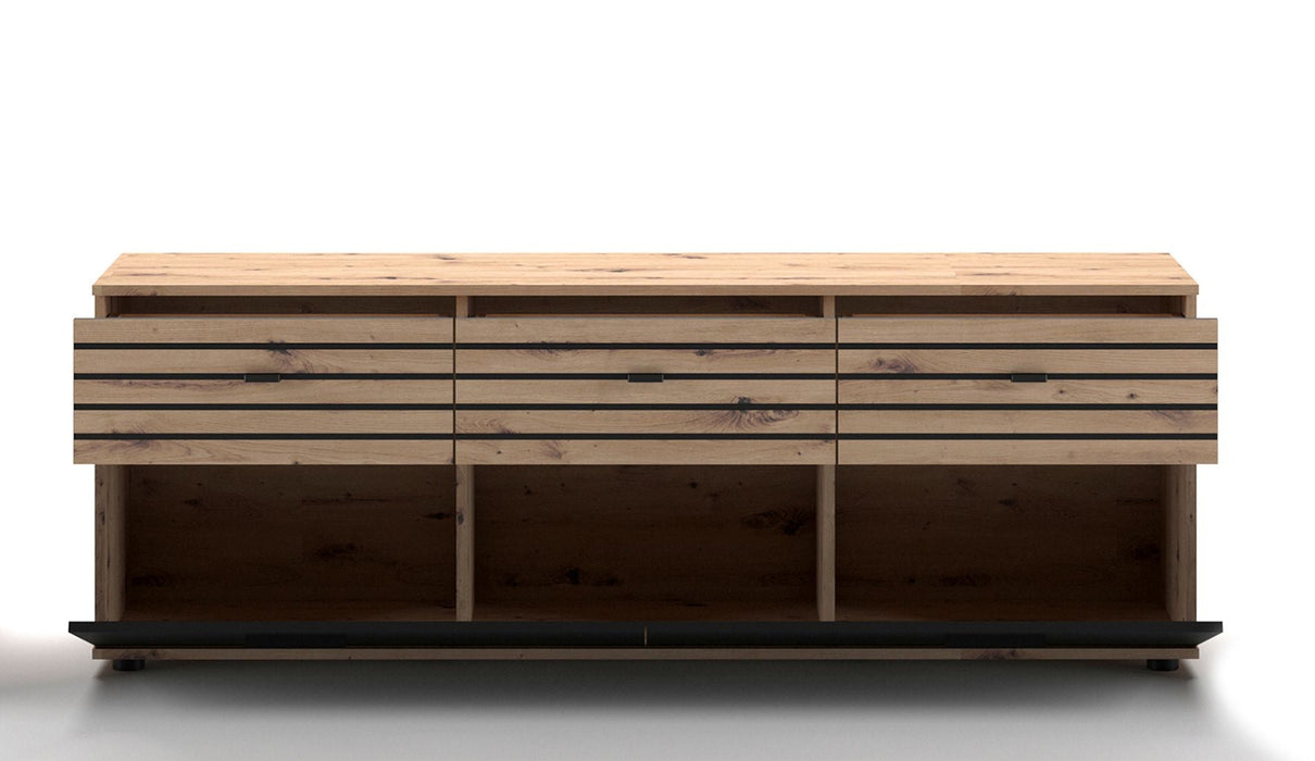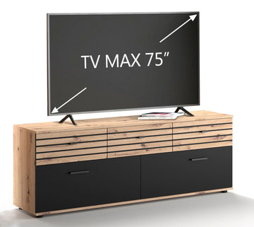 Hometrend | SOLEA 003 TV Lowboard | Schwarz/Dekor Lamellen Artisan Eiche / Artisan Eiche