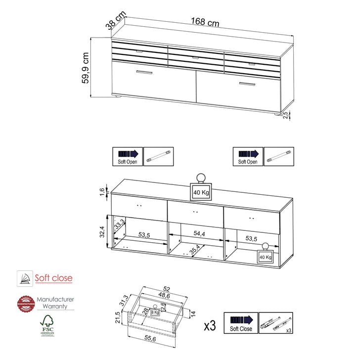 - Oberflächenmaterial Korpus: Melaminbeschichtet