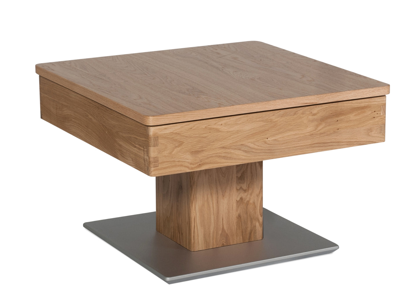 - Gestell: Ilse - Hydro - Lift - Mechanik, Wildeiche Massivholz, Bodenplatte: in Schliffoptik edelstahlfarbig lackiert mit eingelassenen Rollen